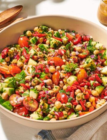 Mediterranean Chickpea Salad Serves: 4 Prep time: 10 minutesNo cooking needed ⭐ Ingredients 1 can (15 oz) chickpeas, drained & …