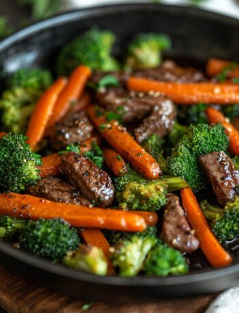 Add broccoli and toss. Cook 2–3 minutes until bright green and just tender. You can splash in 1–2 tbsp water and cover briefly if you like softer broccoli. -