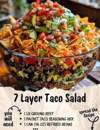 This fun and flavorful salad combines seasoned ground beef, fresh lettuce, juicy tomatoes, cheese, and crunchy Doritos all tossed in …