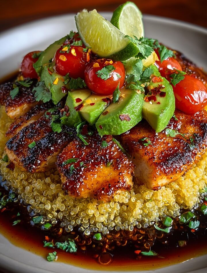 🌶️🍋 Chili-Lime Salmon with Quinoa & Avocado Tomato Salsa