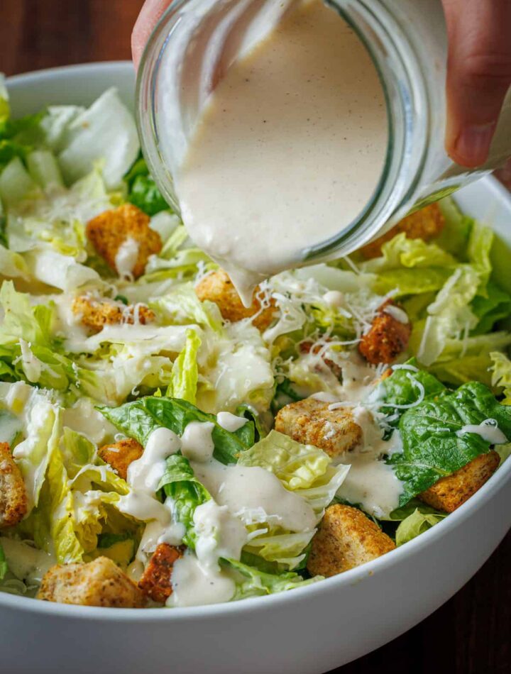 Slowly drizzle in the oil while whisking constantly. The dressing should thicken into a creamy, pale sauce. -