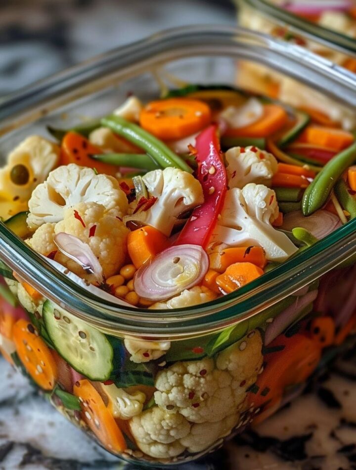 Wash and cut vegetables into uniform pieces for even pickling. -