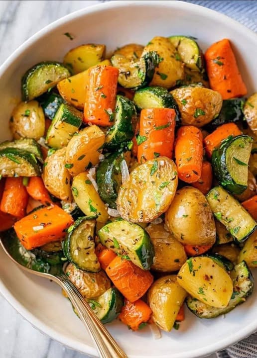 Golden potatoes, tender carrots, and juicy zucchini tossed with garlic, olive oil, and herbs, then roasted until caramelized and fragrant. A healthy, colorful, one-pan side everyone loves.