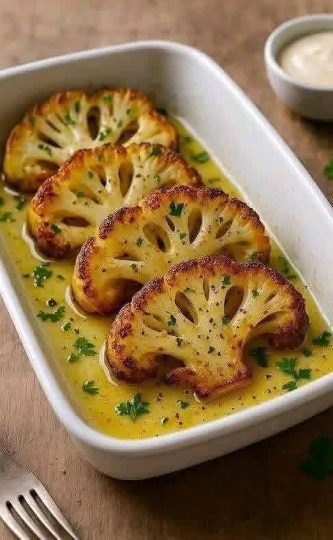 Golden Cauliflower Steaks with Garlic Lemon Butter Sauce