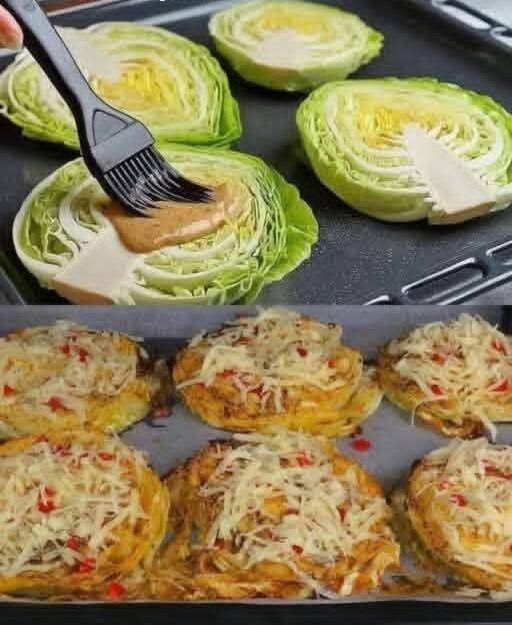 Lay cabbage steaks on the tray and brush generously on both sides with the mixture.