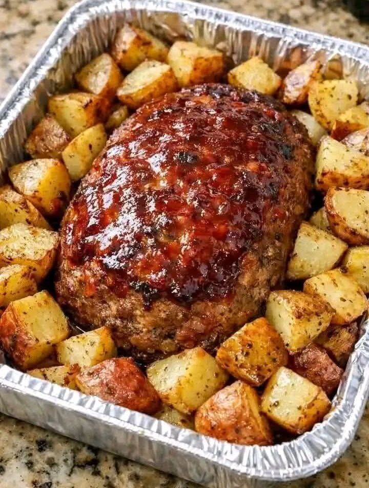 🍽️ One-Pan Glazed Meatloaf with Roasted Potatoes