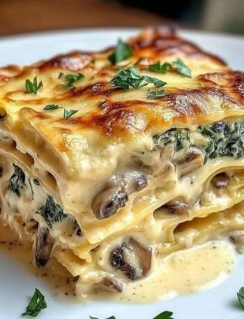 ๐Ÿฅ˜ Creamy Spinach & Mushroom Lasagna Layered with sautรฉed mushrooms, fresh spinach, creamy bรฉchamel, and melty cheese. No meat needed …