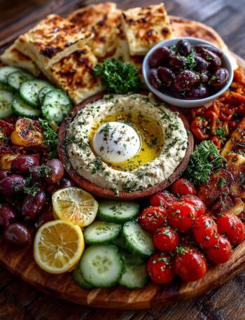 Mediterranean Mezze Platter (Serves 4–6) What’s on the platter Classic hummus (with olive oil & soft-boiled egg) Pan-seared halloumi Marinated …