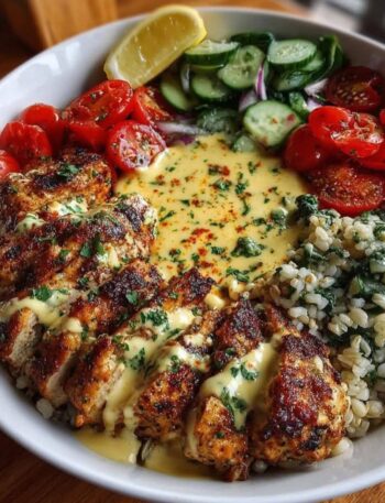Lemon Cream Chicken Grain Bowl (Mediterranean-ish vibes) What this looks like Spiced, pan-seared or grilled chicken thighs Chewy grains (farro …