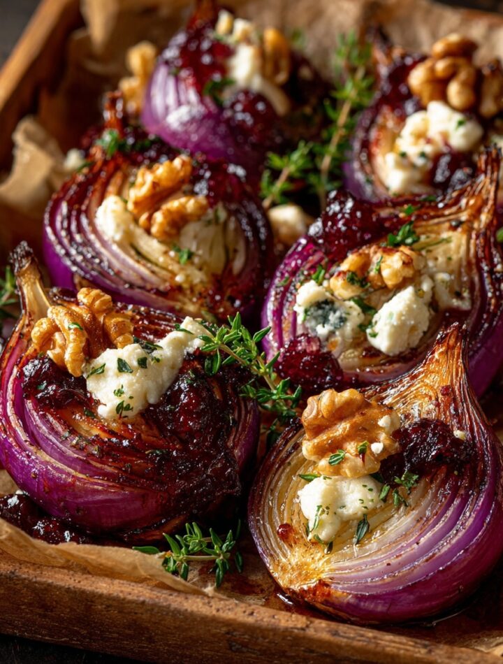 Roasted Red Onions with Goat Cheese, Walnuts & Balsamic