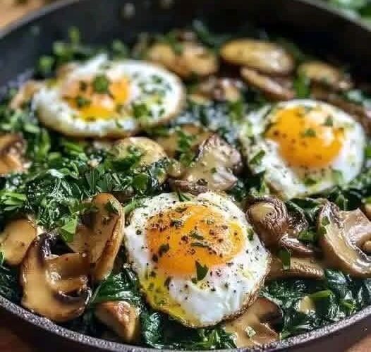 Skillet Mushrooms & Greens with Sunny Eggs