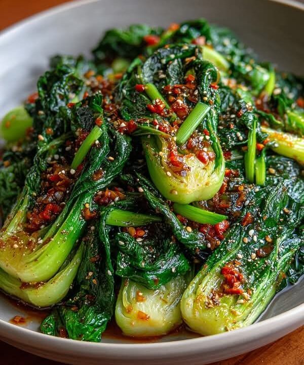 This dish is tender, vibrant baby bok choy coated in a savory, garlicky sauce with chili heat and nutty sesame flavor. It’s quick, bold, and deeply umami — the kind of side dish that quietly steals the spotlight. Perfect with rice, noodles, or grilled proteins.