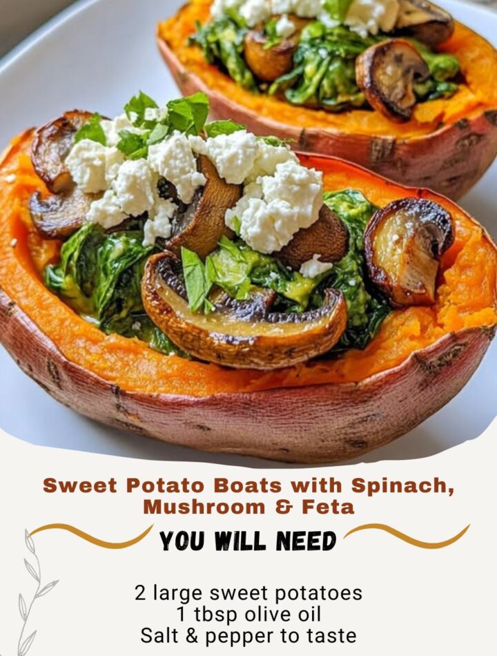 Fill each sweet potato half with the spinach-mushroom mixture.